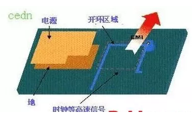 時(shí)鐘信號(hào)等高速信號(hào)網(wǎng)絡(luò),在多層的PCB走線的時(shí)候產(chǎn)生了閉環(huán)的結(jié)果,這樣的閉環(huán)結(jié)果將產(chǎn)生環(huán)形天線,增加EMI的輻射強(qiáng)度。